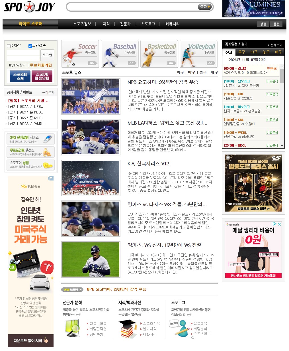 요즘 스포츠 팬들 사이에서 스포조이는 정말 핫한 사이트로 떠오르고 있어요. 다양한 스포츠 정보와 실시간 경기 결과를 제공하는 이 사이트는 스포츠를 사랑하는 사람들에게는 필수적인 플랫폼이죠.