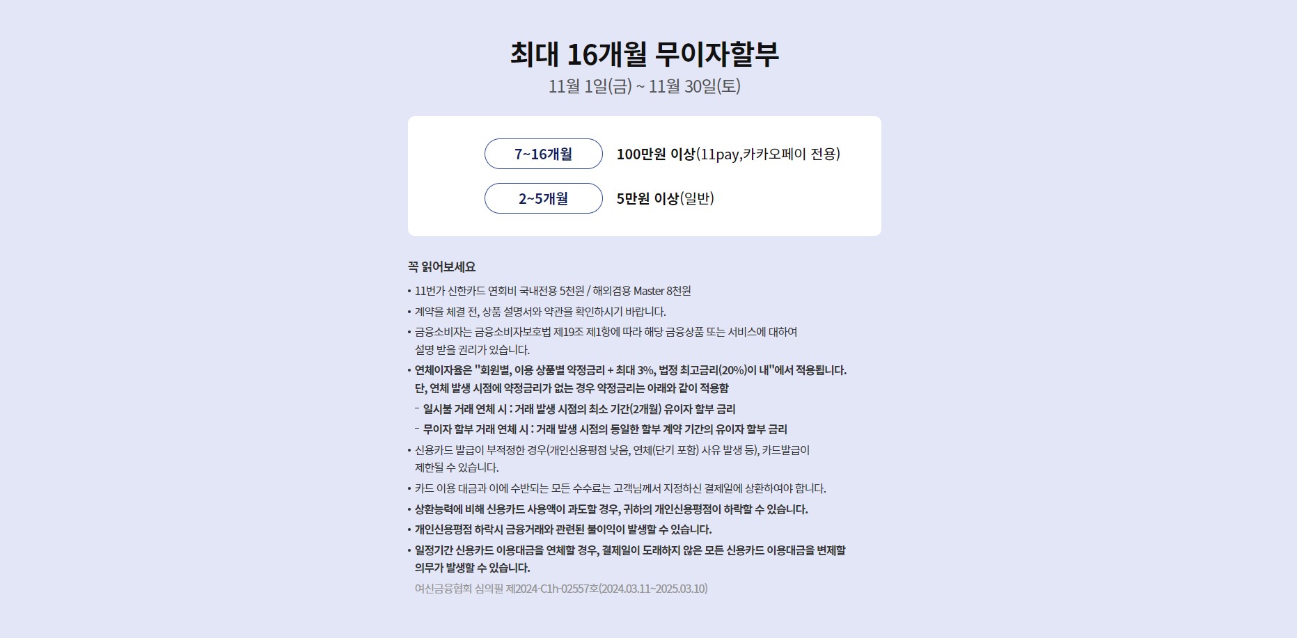 - 카드사 혜택 이용하기 : 특정 카드사와 제휴하여 추가 할인을 제공하는 경우가 많습니다. 예를 들어, T 멤버십 카드로 결제 시 11% 추가 할인을 받을 수 있으니, 카드 혜택을 잘 활용하세요. 특히 이번 딜은 신한카드로 결재시 큰혜택이 따라옵니다