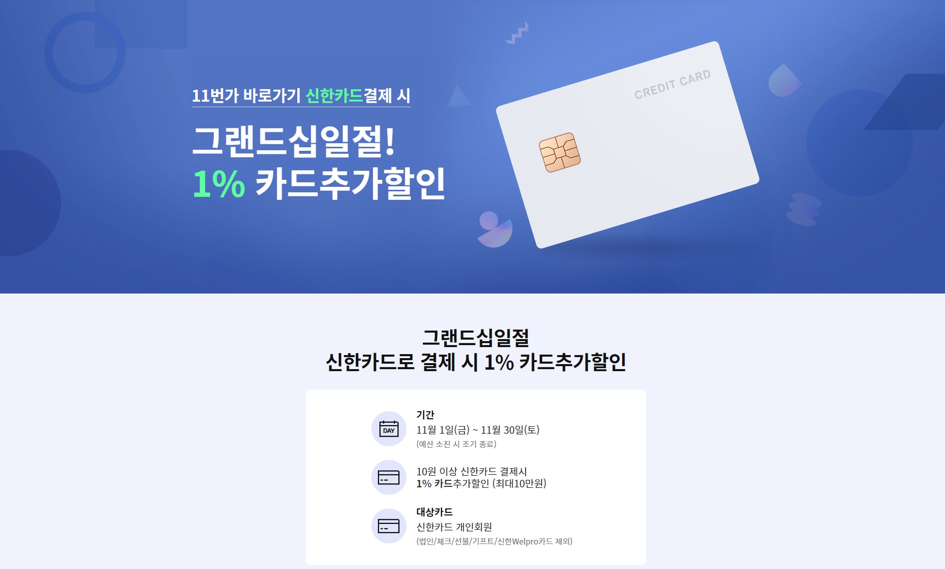 마지막으로, 11절이 끝난 후에도 다양한 할인 이벤트가 이어지니, 계속해서 11번가를 주목해보세요. 특히, 11월 13일부터 19일까지는 쓱데이 이벤트가 진행되니, 이 시기도 놓치지 마세요!